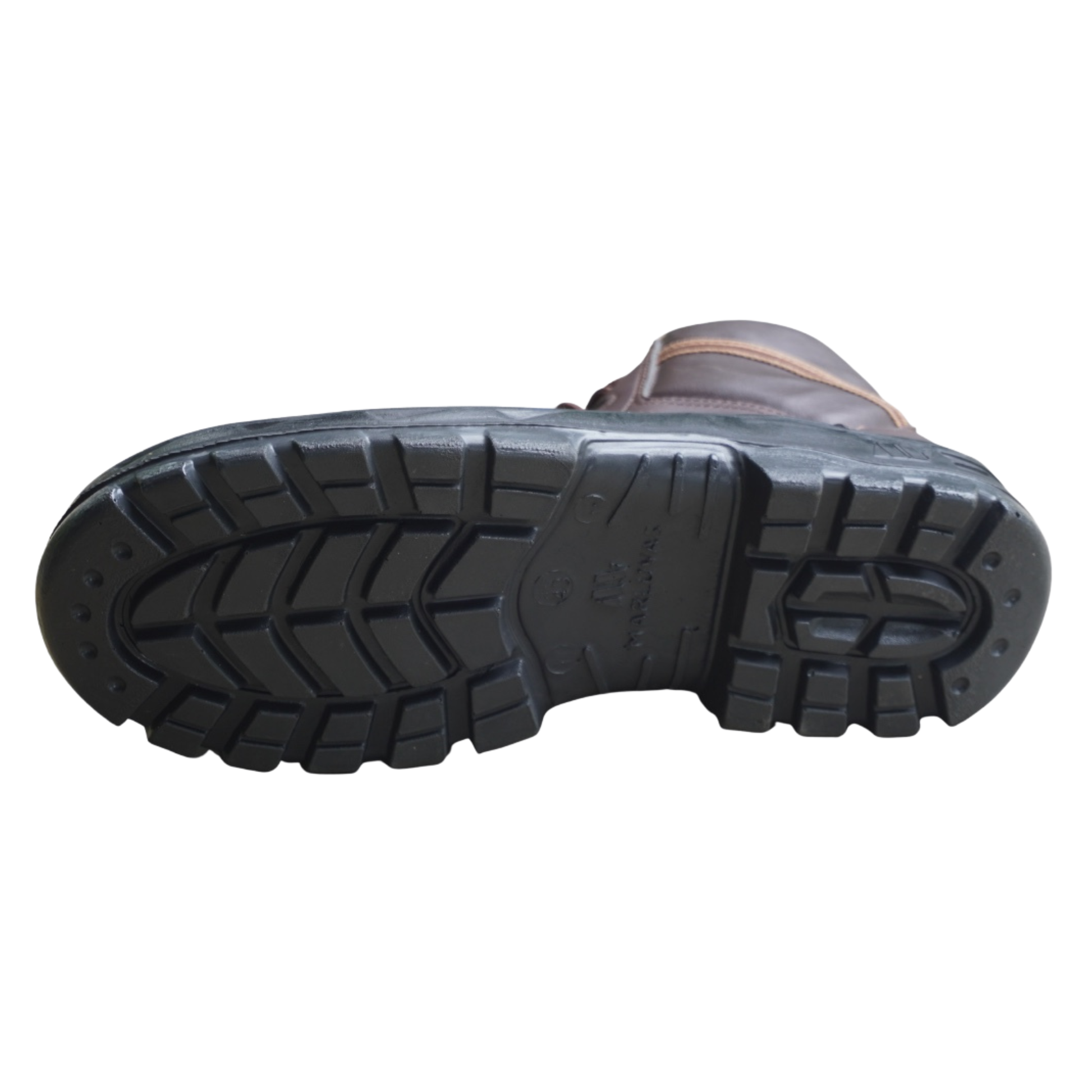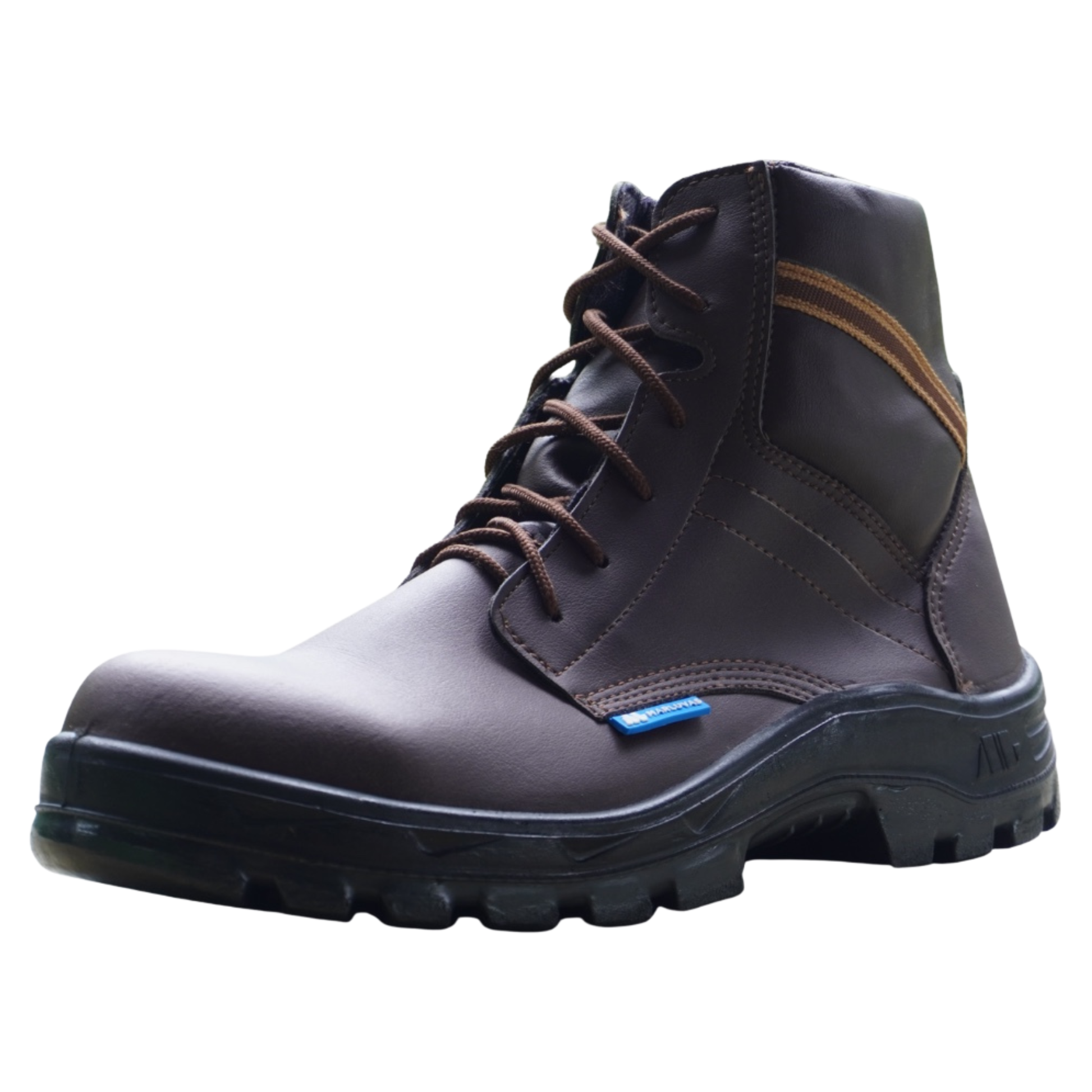 Bota de seguridad fabricada en microfibra de color café, ideal para quienes laboran en el campo de la construcción, logistica, trabajos en altura y actividades con riesgo eléctrico. Posee puntera de composite, plantilla anti perforante de kevlar, suela antideslizante de PU con sistema de absorción de impactos en el talón y resistencia dieléctrica. Diseñada bajo normas ergonómicas, son reconocidas por su ligereza, confort y resistencia a la abrasión. Aptas para trabajos en alturas por ajuste anti torsión.